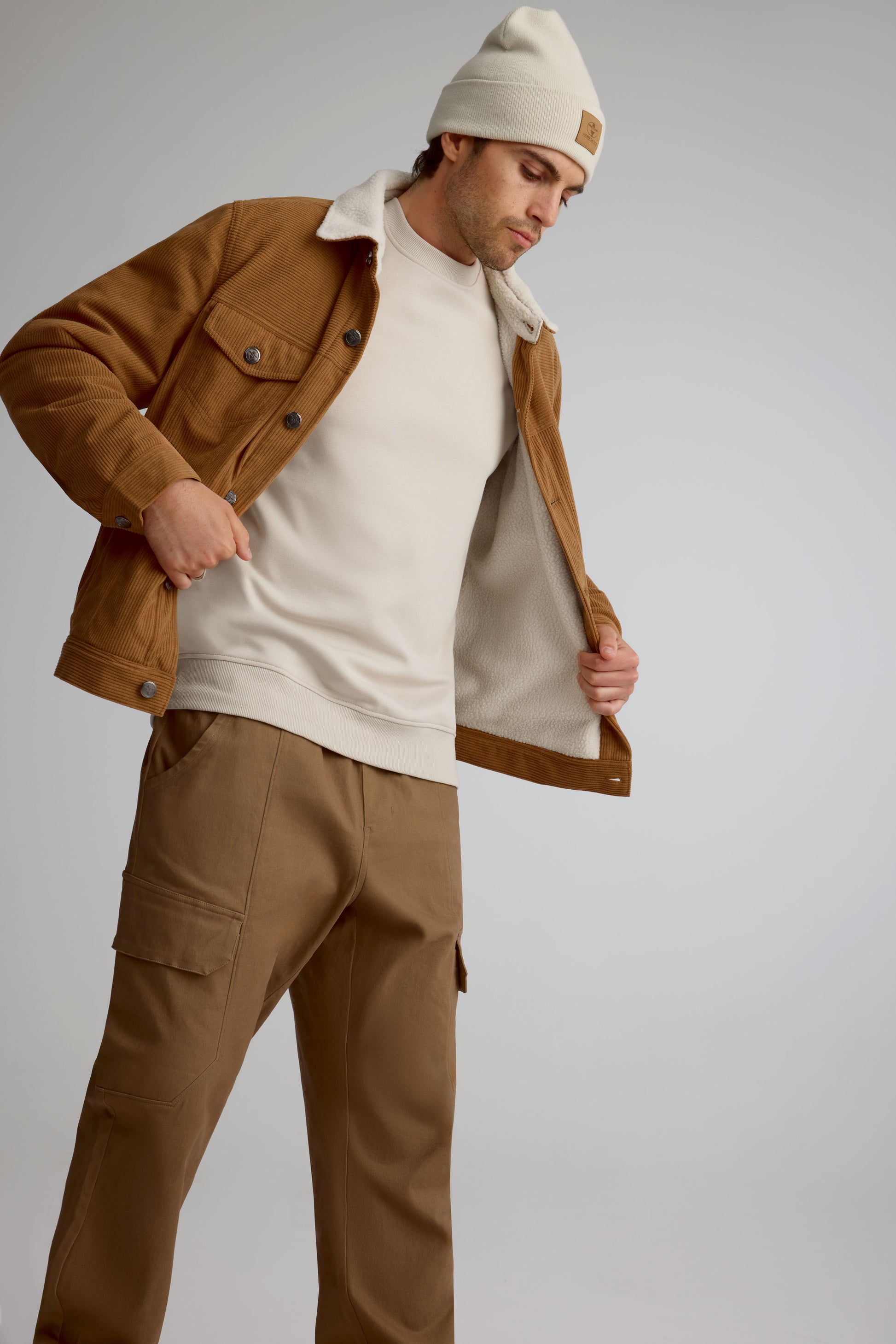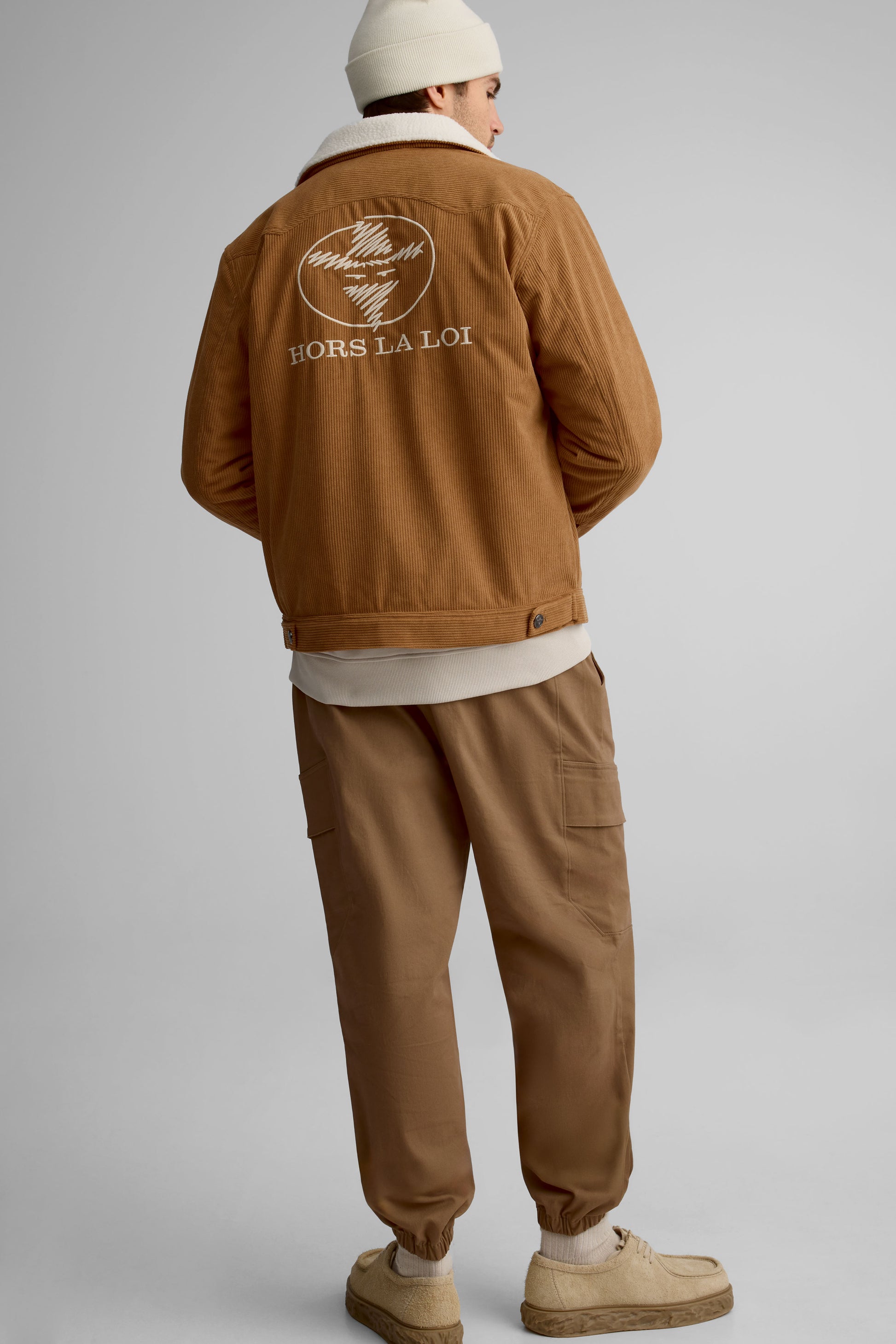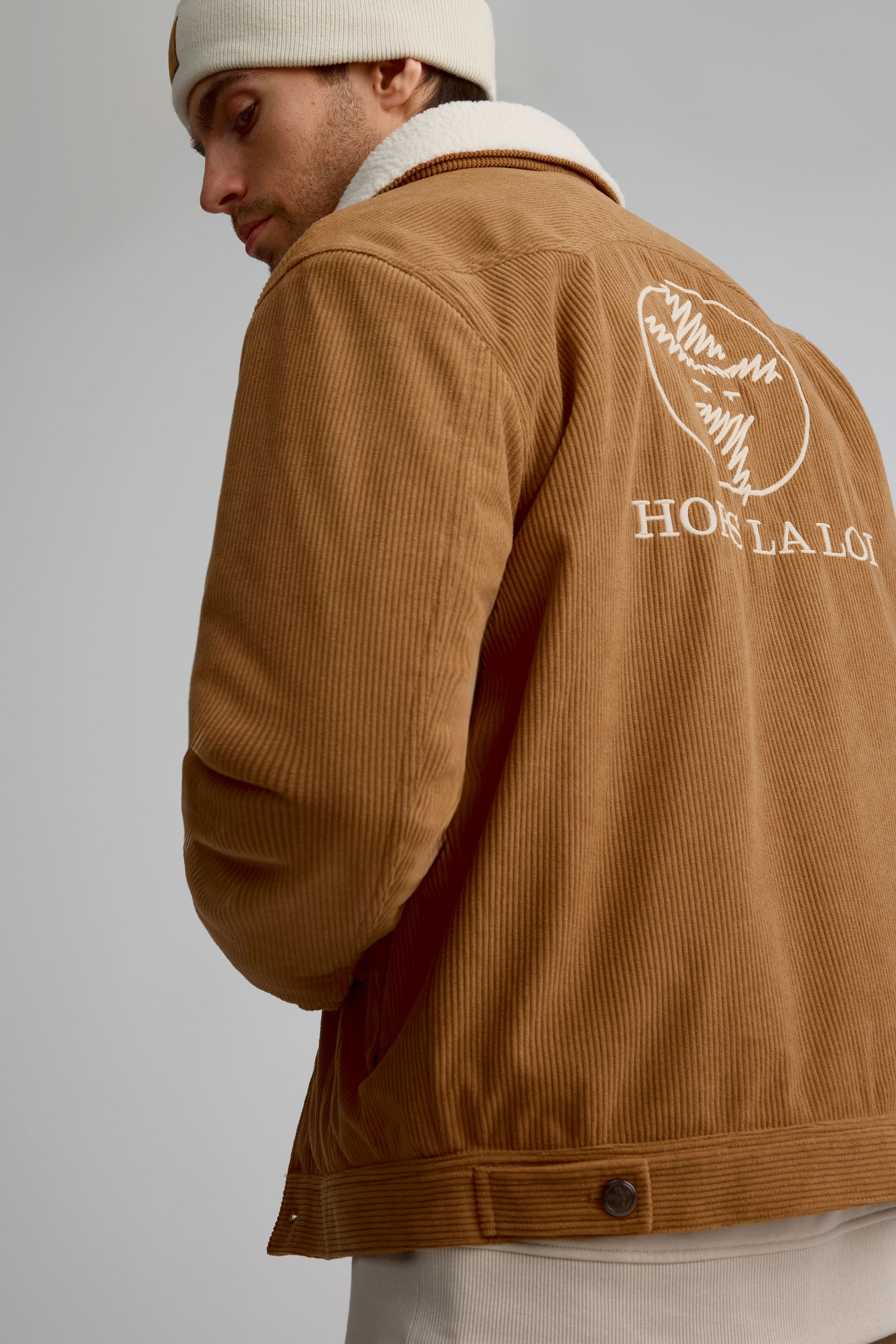Inspired by vintage rodeo icons and built for today, The Roadie makes a strong impression without raising its voice. With its textured corduroy, cozy sherpa collar, and structured silhouette, it revisits the rugged men’s classic through the Hors La Loi lens. You’ll recognize it by the bold Bandit logo embroidered on the back, the durable construction, and the water-repellent finish that’s ready for the elements. Wear it solo or layer it over a crewneck or a hoodie—whether you’re heading into the woods or wandering downtown. A signature piece that brings comfort, character, and grit to your rotation, season after season.