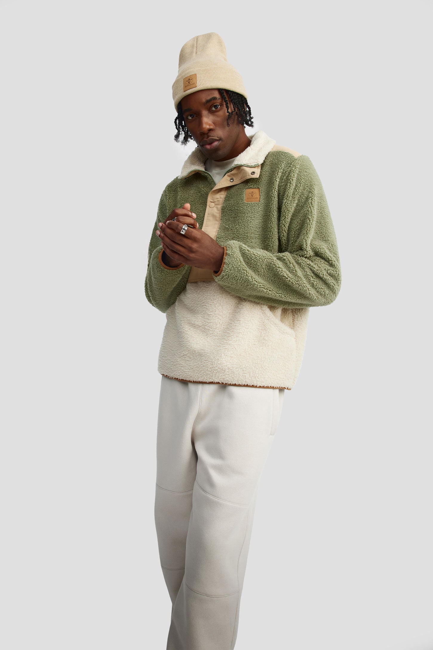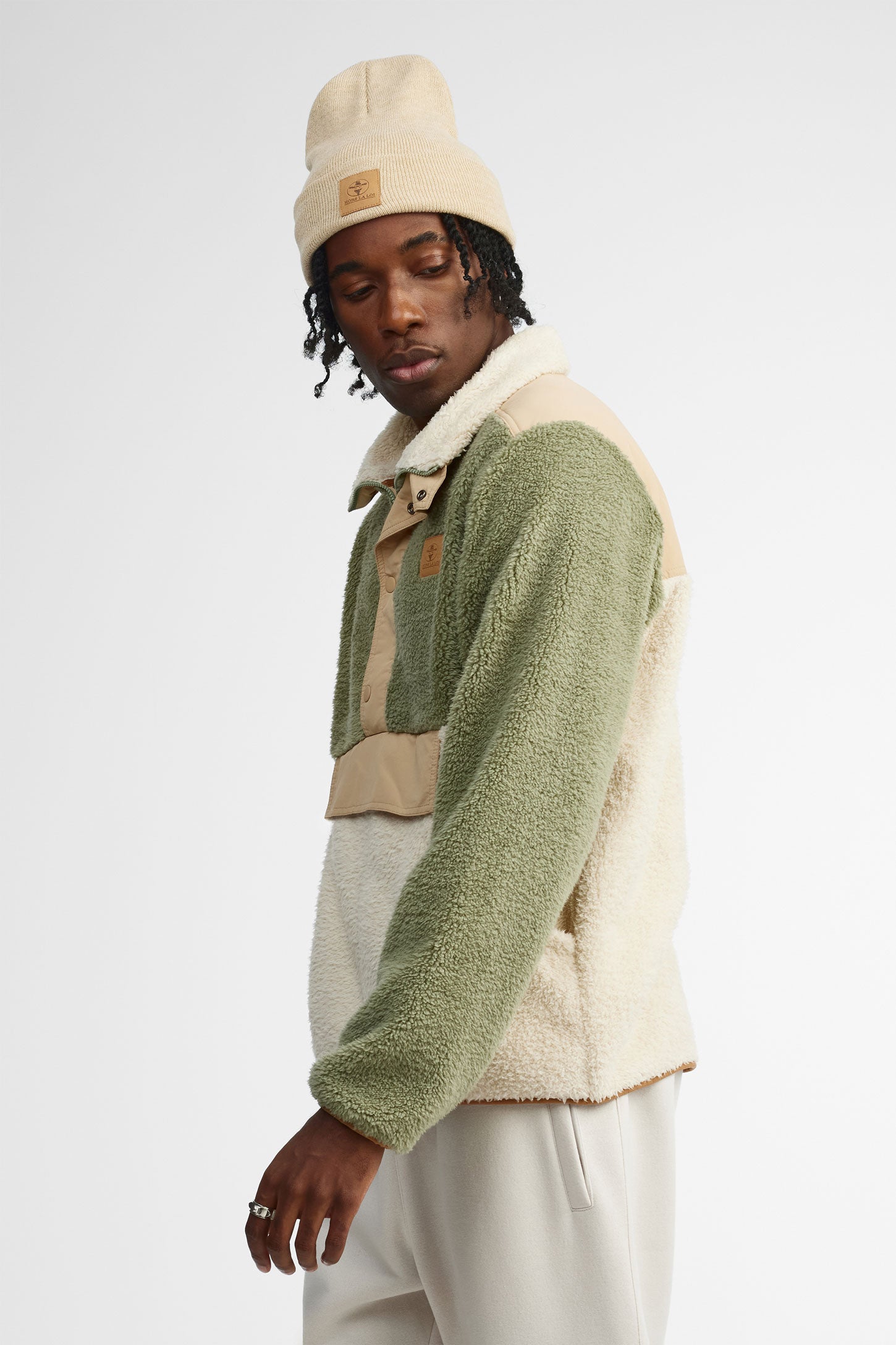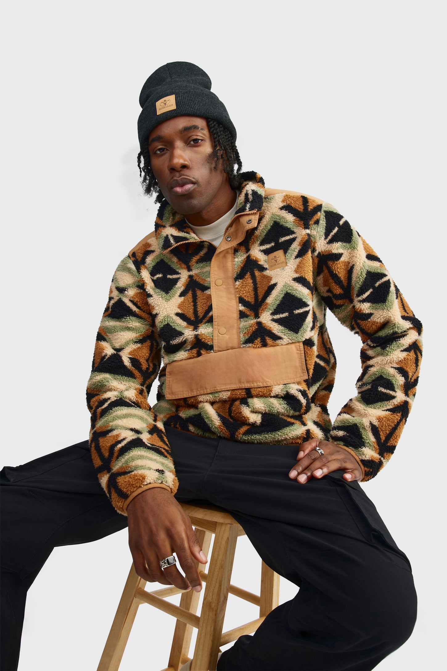 The Soft One is that pullover you reach for the moment the air turns crisp. With its high collar, ultra-plush fleece fabric, and practical front pockets, it’s all about comfort—without compromising style. Its slightly relaxed fit makes layering easy over a tee or hoodie. The front button detail nods to utilitarian classics, while the bold Hors La Loi print at the back stakes your claim loud and clear. Whether you’re exploring the outdoors, chilling at the chalet, or navigating a brisk city day, this layer adds warmth and character in equal parts. Available in Combo Chipmunk or Irish Cream.