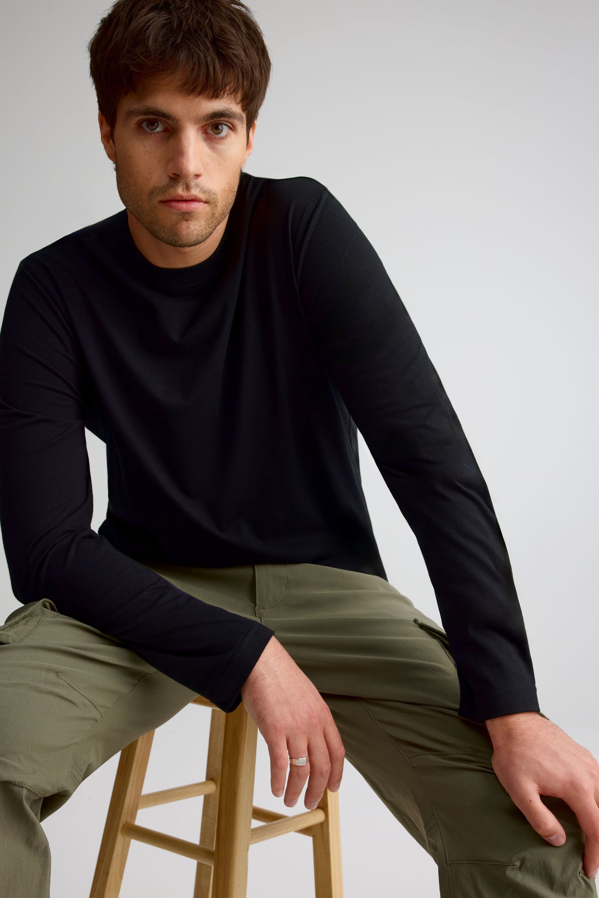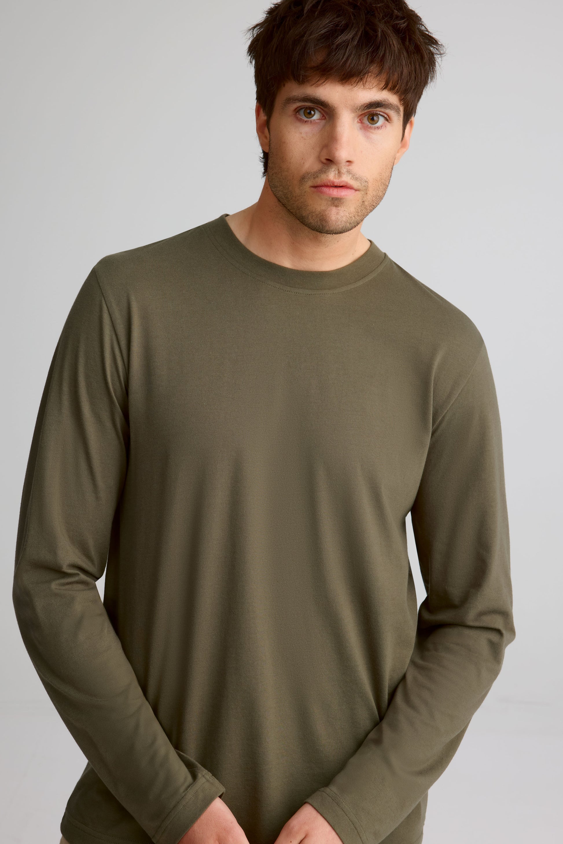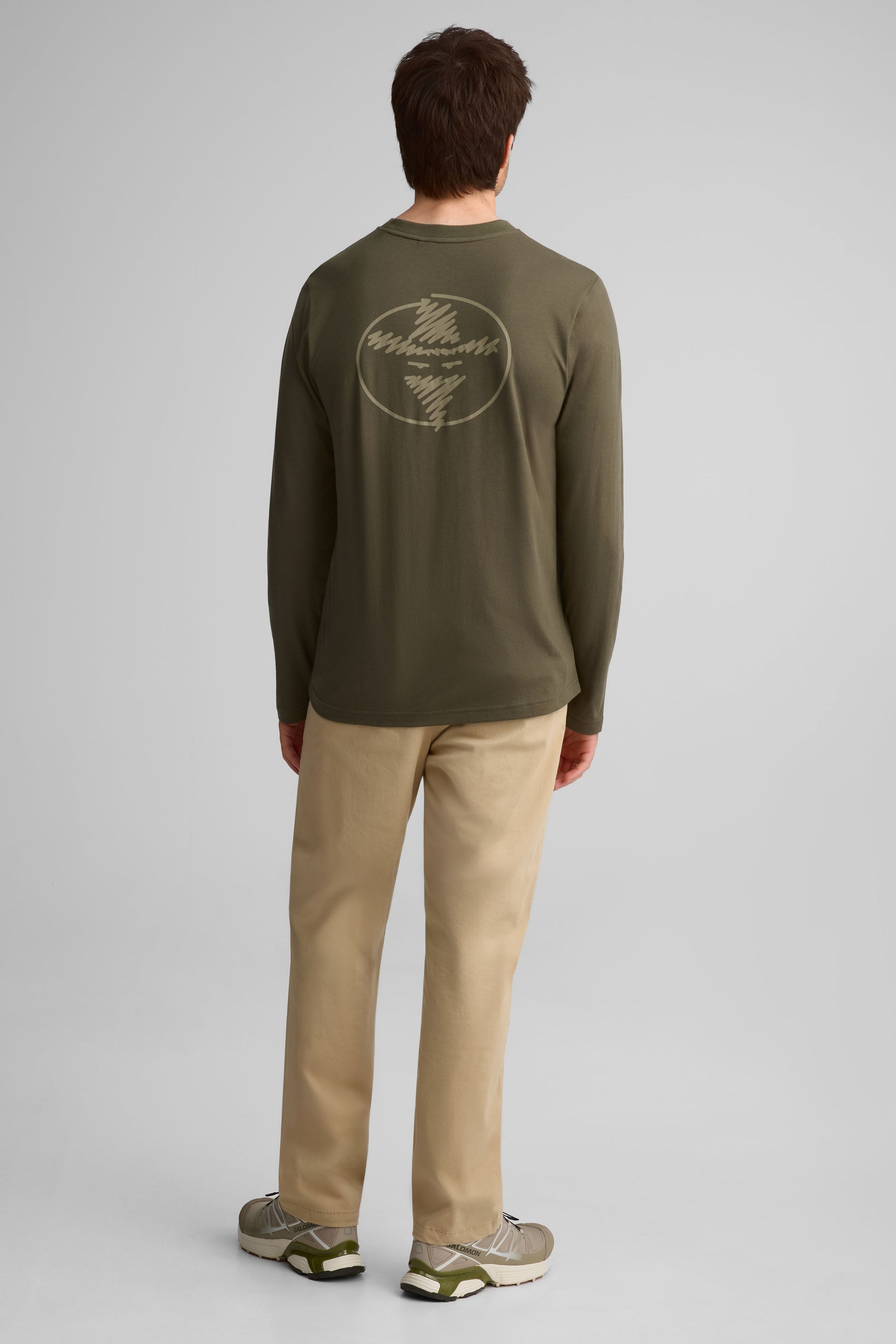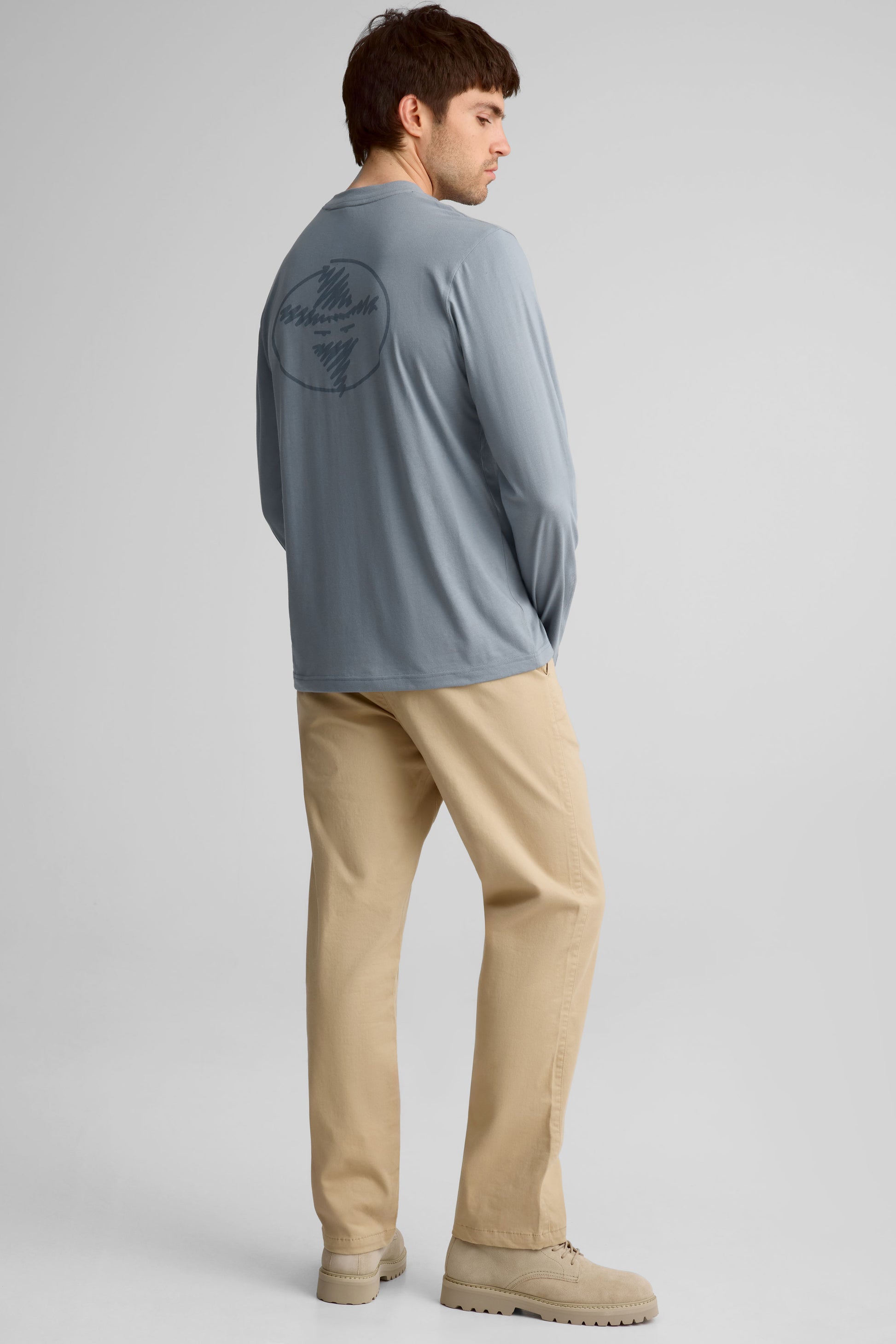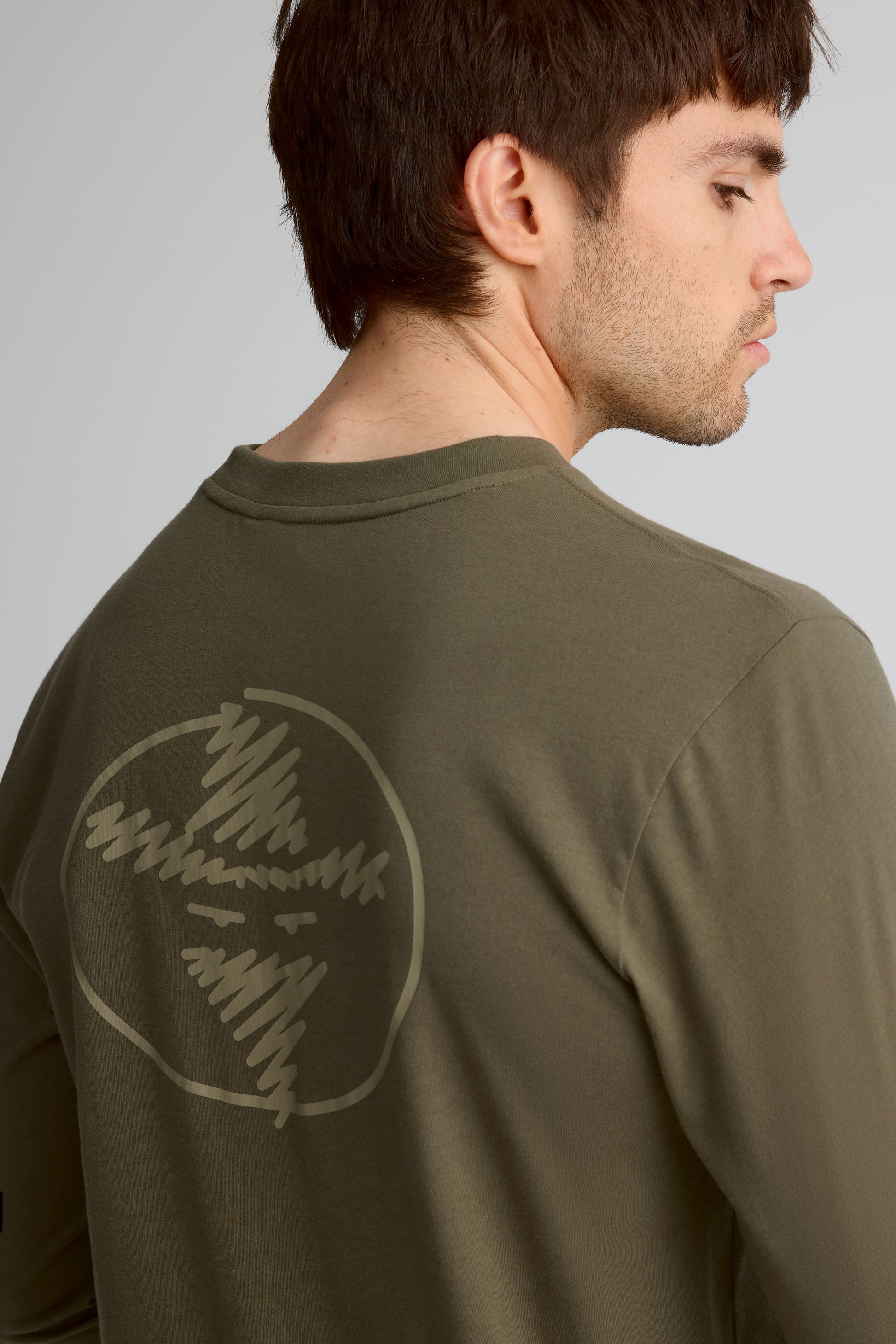 The Laid-Back is the kind of long-sleeve you throw on without overthinking—but that still makes a statement. Its regular fit and bold Hors La Loi logo on the back give it just the right mix of ease and attitude. Made from recycled polyester and organic cotton, it offers comfort with a conscience. Wear it on its own with classic denim, or layer it under a utility jacket when the temperature drops. Its neutral tones and streamlined design make it a go-to piece, from sunrise to after dark. Available in Blue, Green, or Black.