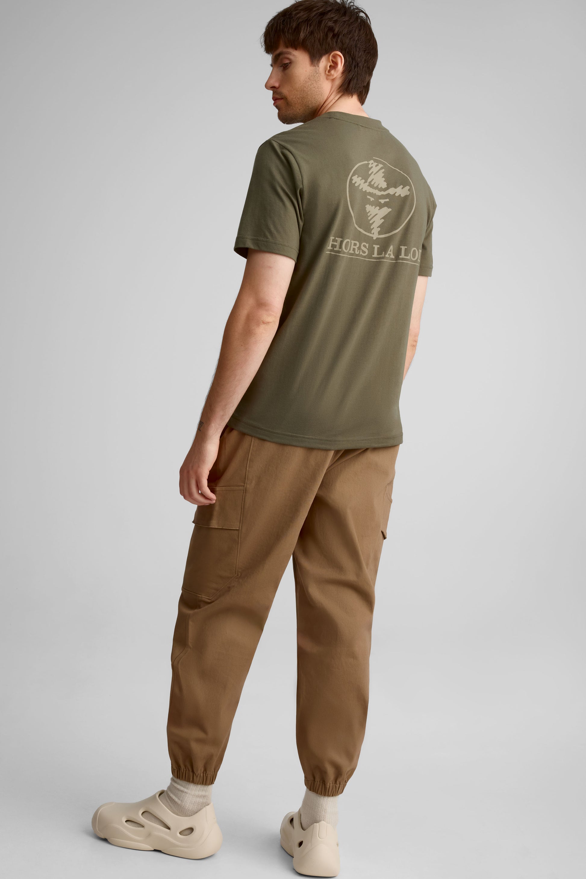 With its regular fit, clean lines and Hors La Loi logo printed on the back, The Must-Have strikes the perfect balance between simplicity and edge. Made from a blend of recycled polyester and organic cotton, it’s built to last without compromising on comfort. Easy to work into any outfit, it pairs just as well with cargo jeans as it does with a slim-cut pant—whatever fits your vibe. The soft, breathable fabric makes it a go-to staple you’ll reach for season after season. Available in Blue, Green, or Black.