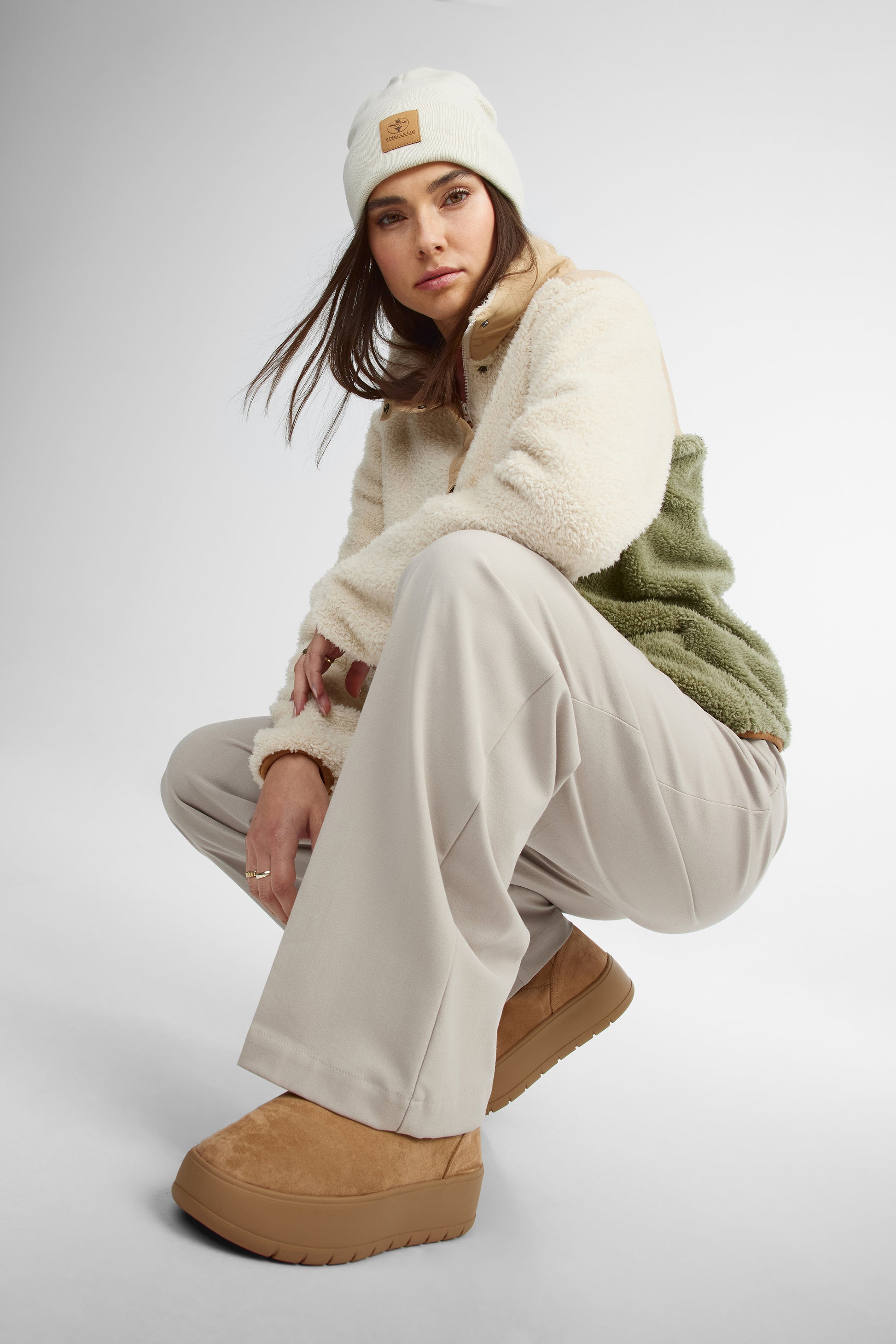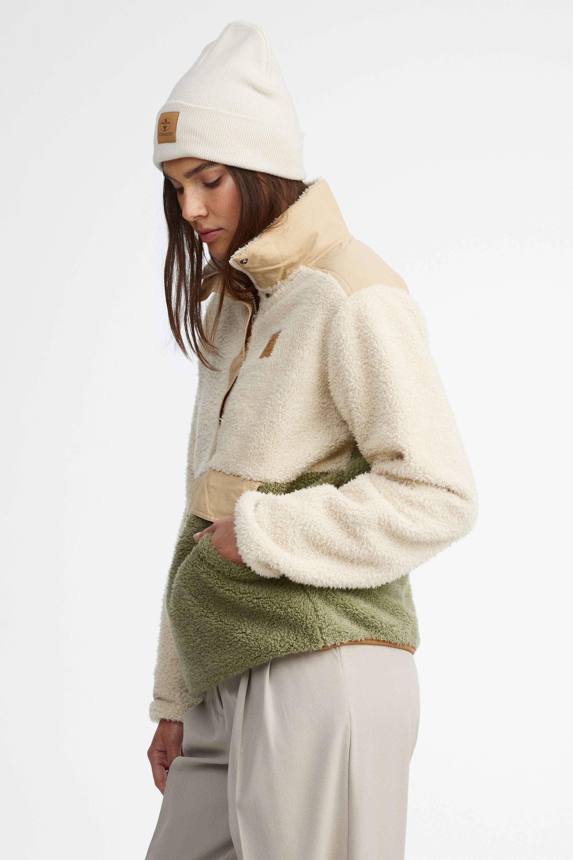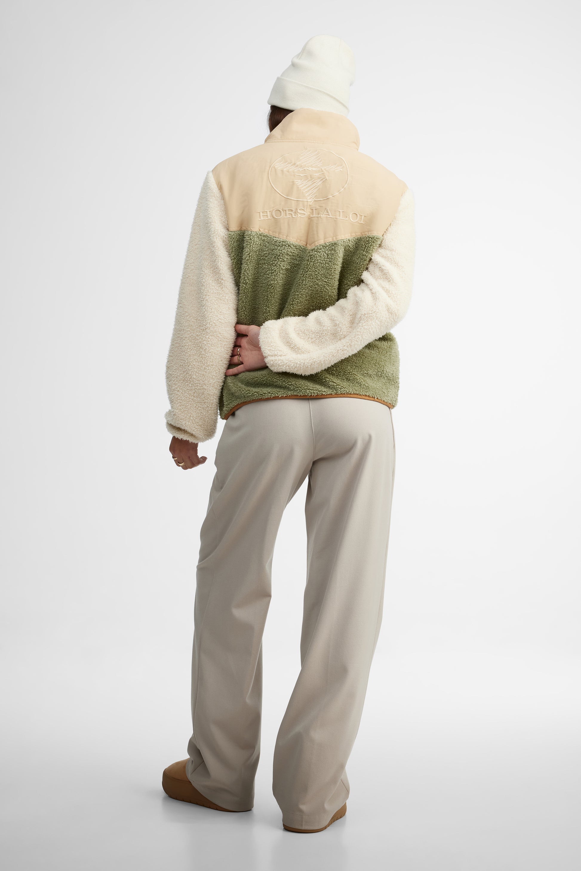Le Douillet, c’est le chandail qu’on attrape sans réfléchir dès que le mercure descend. Avec son col montant, sa texture en peluche ultra douce et ses poches pratiques, il enveloppe dans un confort réconfortant sans jamais faire de compromis sur le style. Sa coupe décontractée permet de le superposer facilement à tes essentiels préférés. Les boutons à l’avant ajoutent une touche utilitaire assumée, tandis que l’imprimé signature dans le dos affirme ton appartenance à l’univers Hors La Loi. Parfait pour les escapades en nature, les week-ends au chalet ou les journées fraîches en ville, quand on a envie d’une couche stylée en plus. Proposé en combo Bois de cèdre ou Crème irlandaise.